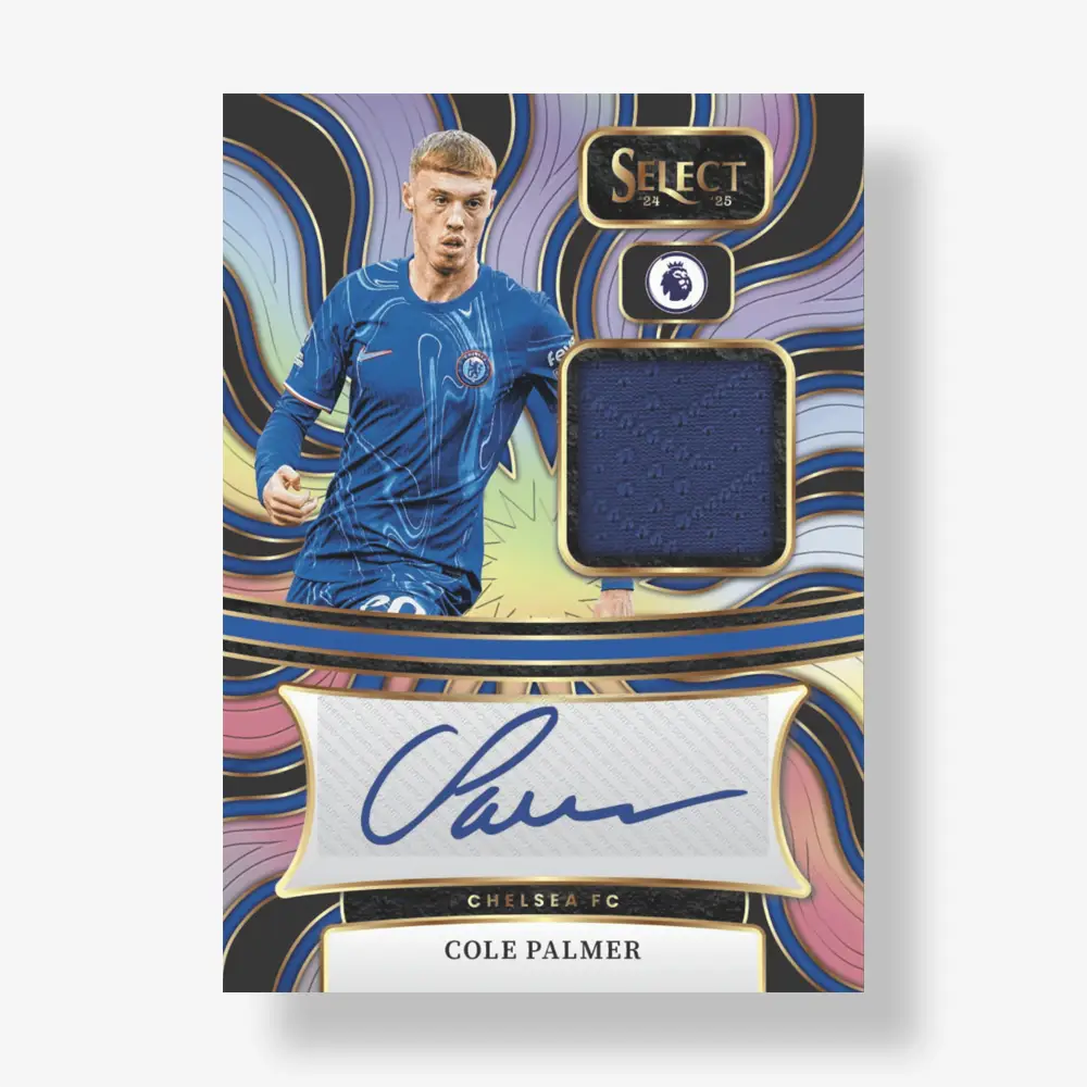 W każdym hobby boxie znajdziesz średnio 3 karty z autografem i/lub elementem memorabilia, w tym podpisy takich zawodników jak Cole Palmer, Kobbie Mainoo, Savinho i wielu innych.