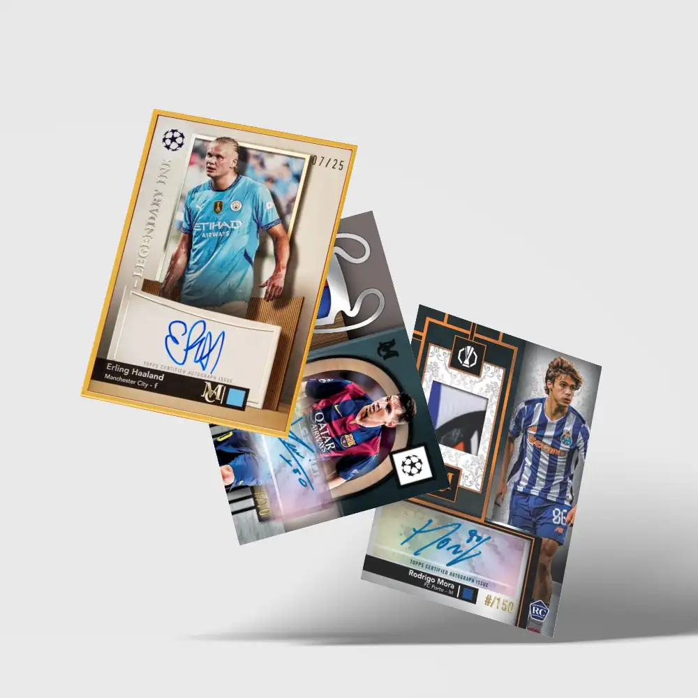 Topps Museum Collection UEFA Club Competitions 2024/25 przenosi artyzm pięknej gry do jednej z najbardziej prestiżowych marek Toppsa. Znana z autografów podpisywanych bezpośrednio na kartach, reliców używanych w meczach oraz eleganckiego designu w czerni, srebrze i złocie, seria Museum oferuje dopracowaną checklistę pełną gwiazd, kart debiutantów oraz efektownych kart auto–relic, stworzonych z myślą o prawdziwych kolekcjonerach.