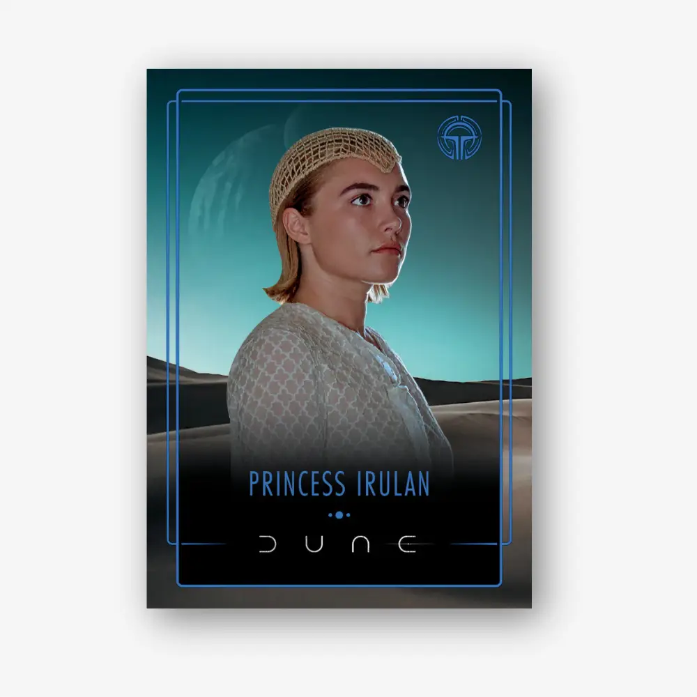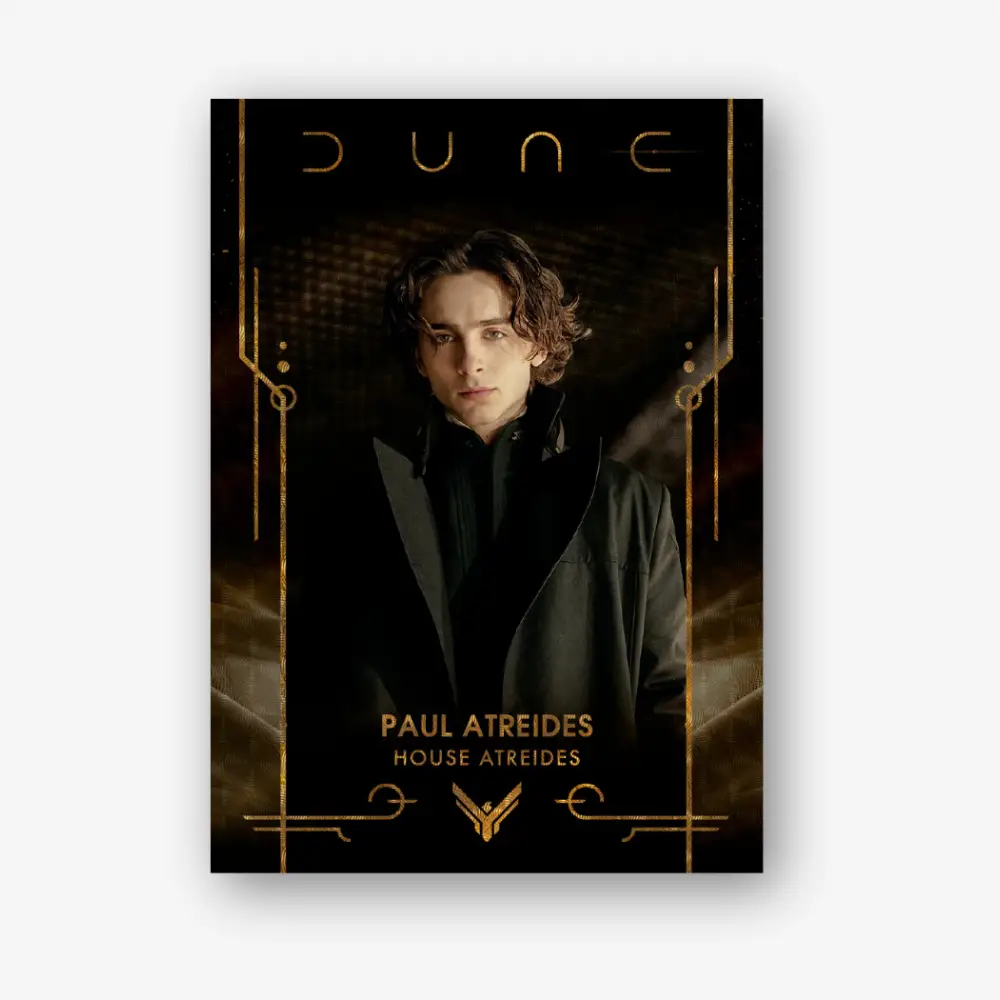 Kolekcjonerzy odkryją także szereg unikalnych insertów, w tym Dune Acrylics i Art of Dune, a także wiele innych niespodzianek. Bazowy zestaw 90 kart oddaje istotę sagi, prezentując 35 członków obsady filmów Diuna: Część pierwsza i Część druga oraz 65 zapierających dech w piersiach scen z Diuny: Część pierwsza.