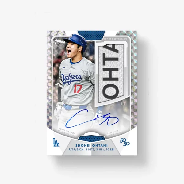 Topps 50/50 2024: Shohei Ohtani to limitowany zestaw kart kolekcjonerskich, który został stworzony z okazji uznania wyjątkowej kariery japońskiego zawodnika baseballowego, Shoheia Ohtani. Zestaw ten jest częścią serii Topps, jednej z najpopularniejszych serii kart sportowych, która specjalizuje się w wydawaniu kart związanych z zawodnikami MLB.