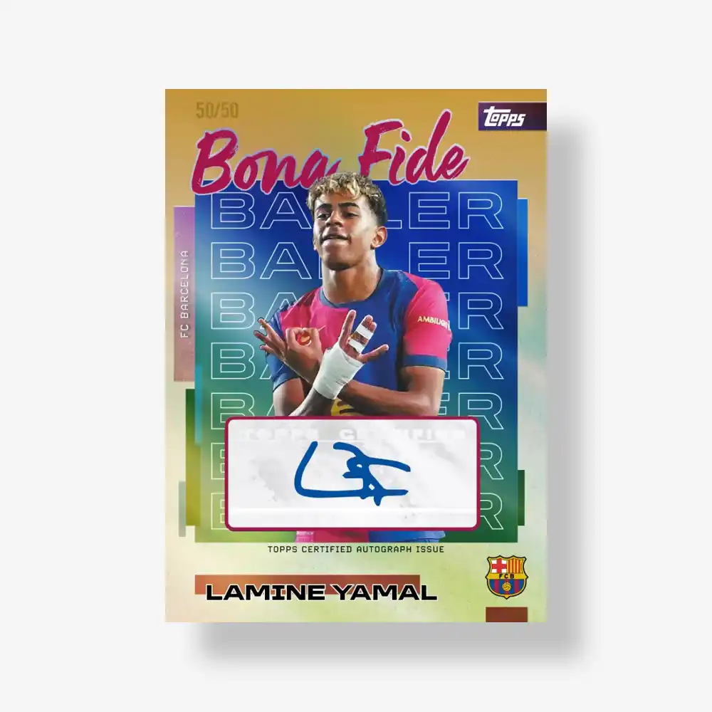 Karty z autografami: Trafisz autograf w co dwóch boxach! Poluj na certyfikowane autografy obecnych zawodników oraz ikon Barçy w ramach subsetów Base Card i Bona Fide Baller.