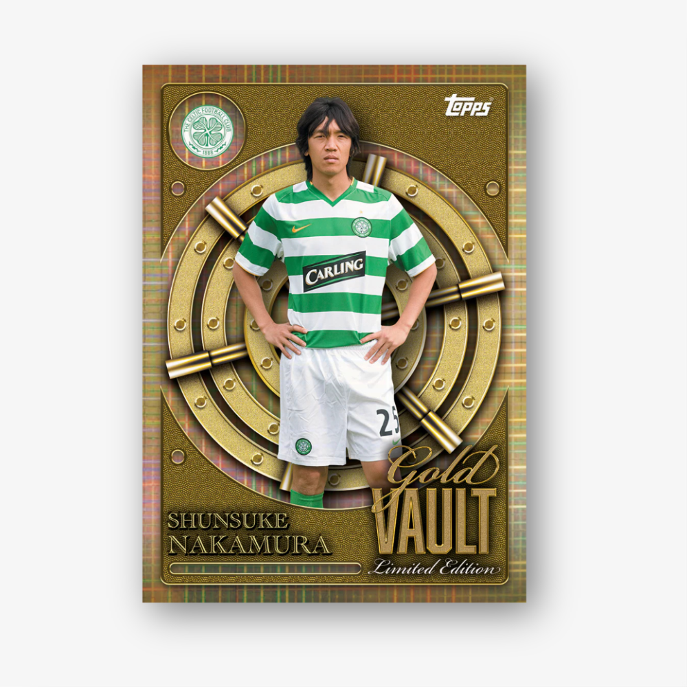 Buduj swoją kolekcję dzięki base cards z ulubieńcami pierwszej drużyny i obiecującymi młodymi gwiazdami. Subset Name in Lights przypomina niezapomniane chwile bohaterów Celticu – dawnych i obecnych. Na deser czekają Gold Vault Limited Edition cards, zaprojektowane w eleganckim złotym stylu i obejmujące legendy klubu w wyjątkowej odsłonie.