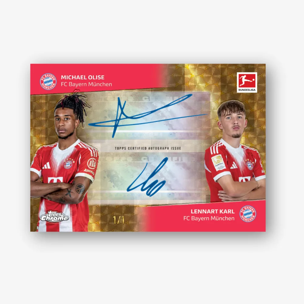 Autografy odgrywają kluczową rolę w produkcie – średnio dwie karty z autografem Chrome® znajdują się w każdym Hobby Boxie. Linia autografów obejmuje Base Autographs z pełną gamą kolorowych paralel Refractor. Dual Autographs i Triple Autographs zwiększają poziom kolekcjonerski, prezentując kilku zawodników Bundesliga na nisko numerowanych kartach, w tym wersjach 1-of-1. Największą atrakcją jest jednak Chrome Superior, zawierający autografy on-card aktualnych supergwiazd, debiutantów i legend – niektóre z nich zawierają dodatkowe inskrypcje.