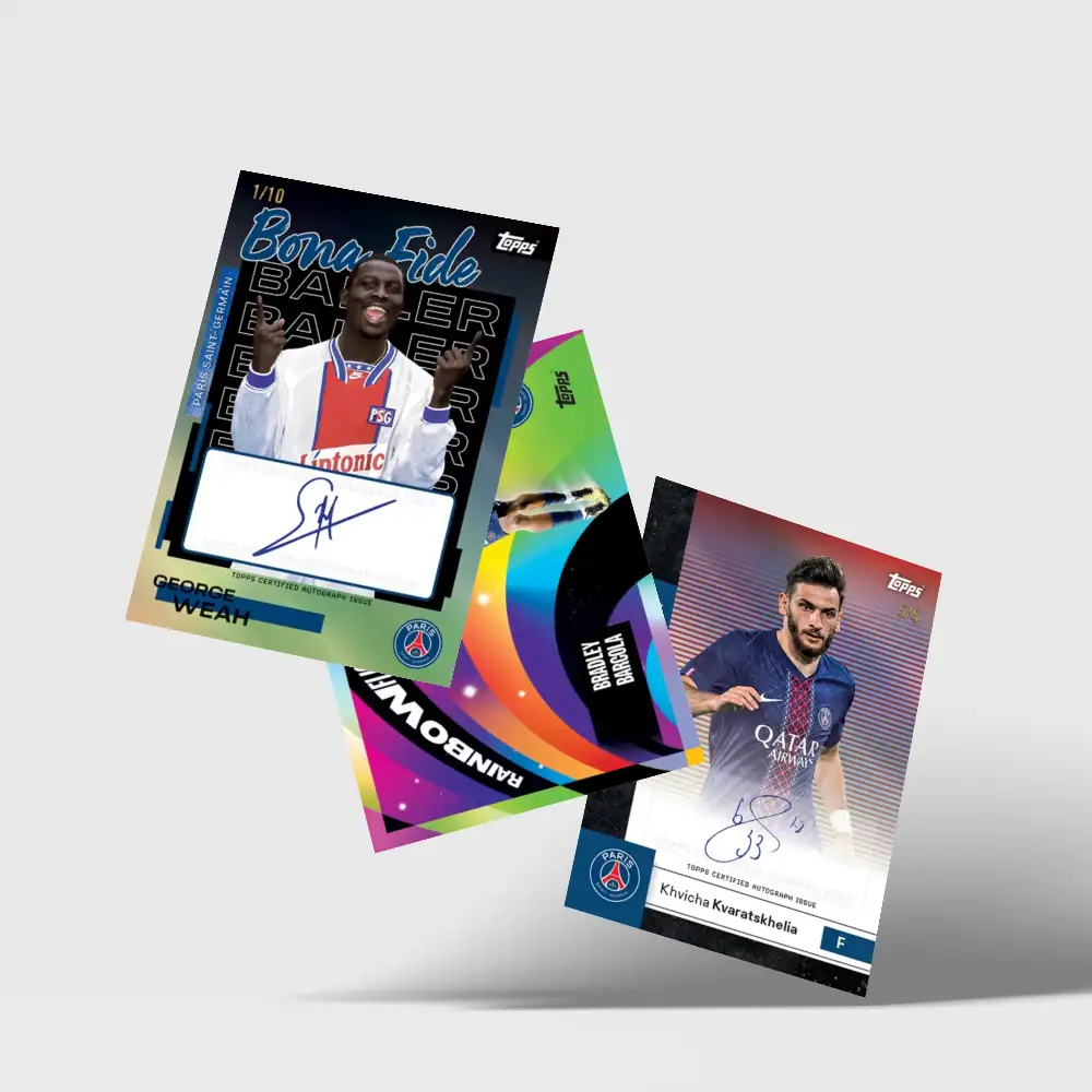 Topps Team Set 2025/26 Paris Saint-Germain to ekskluzywna, klubowa seria celebrująca przeszłość, teraźniejszość i przyszłość PSG. Zawiera inserty Rainbow Flick, obszerną checklistę autografów oraz nową klasę rookie, oferując dużą wartość kolekcjonerską dla fanów Les Parisiens.