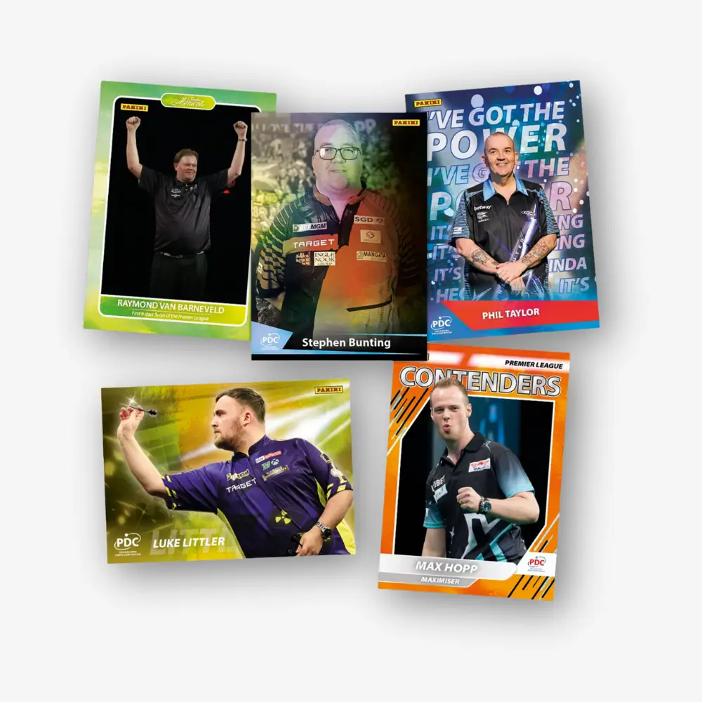 Karty kolekcjonerskie Panini PDC Premier League Darts Trading Cards celebrują to wyjątkowe turniejowe widowisko poprzez ekskluzywną kolekcję, która uwiecznia wszystkich gwiazdorów Premier League, pretendentów, najważniejsze momenty i wydarzenia – w formie limitowanych kart kolekcjonerskich.