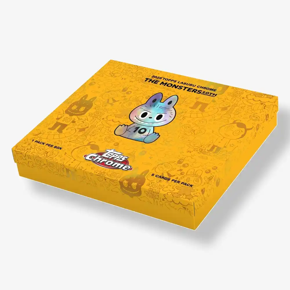 Topps po raz pierwszy w historii nawiązał współpracę z How2Work oraz Pop Mart, aby zaprezentować box Topps Chrome® Labubu 10th Anniversary 2025! Każdy box zawiera cztery bazowe karty Chrome® oraz jeden parallel Chrome®, a także kolekcjonerskie etui w formie breloczka, w którym możesz wyeksponować swoją kartę – dokładnie tak jak swoją figurkę Labubu.