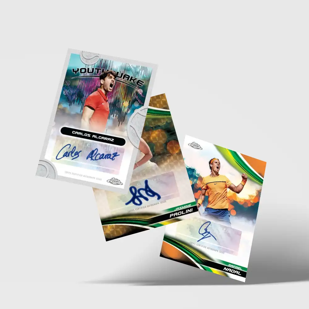 Dzięki wyrazistej estetyce Chrome®, głębokim tęczom parallels i konfiguracji bogatej w autografy, 2025 Topps Chrome® Tennis oferuje premium doświadczenie z otwierania — godne największych aren tenisowego świata.