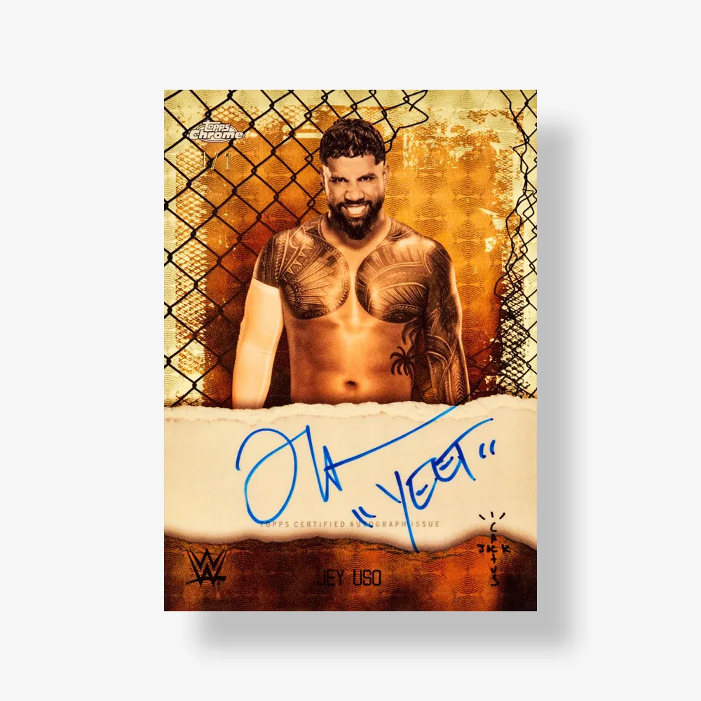Topps Chrome Cactus Jack WWE debiutuje w wersji hobby! Szukaj szerokiej gamy limitowanych równoległych kart, autografów oraz wyjątkowych insertów typu case hit.