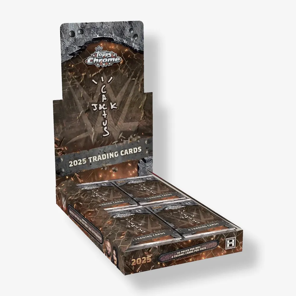 Topps Chrome WWE Cactus Jack 2025 to odważna reinterpretacja kart kolekcjonerskich WWE przez pryzmat elektryzującej estetyki marki Cactus Jack Travisa Scotta. Nasycona energią muzyki, mody i sztuki, ta seria Chrome wykracza poza tradycyjne podejście do kolekcjonowania — to już nie tylko zbieranie kart z wrestlerami, lecz uchwycenie nastrojów, ruchu i dynamiki w każdej karcie.