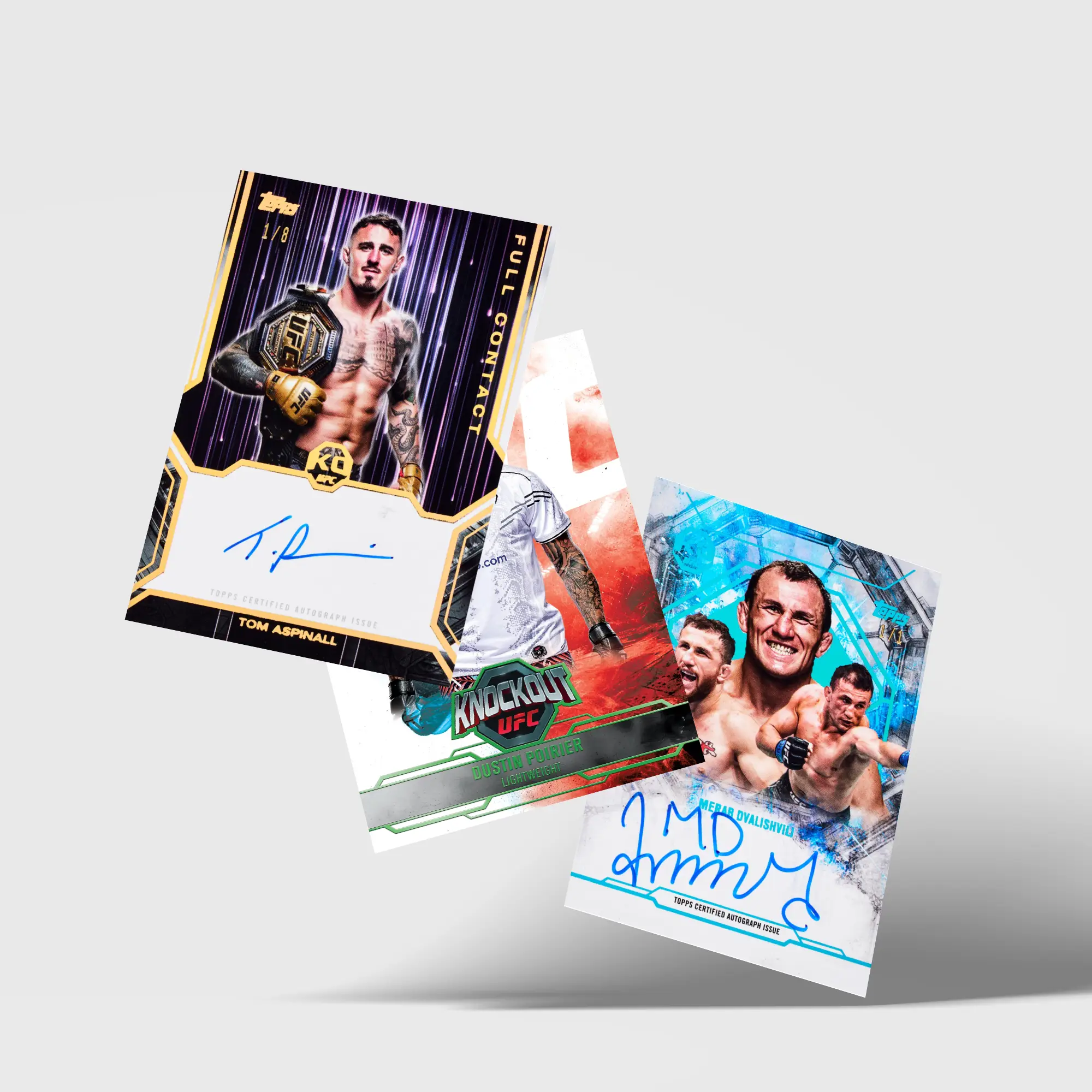 Topps Knockout UFC powraca — przynosząc mocne uderzenia i gorącą atmosferę w świecie Hobby. Szukaj autografów na kartach, reliców i bookletów z Twoimi ulubionymi zawodnikami UFC — legendami, mistrzami i wschodzącymi gwiazdami.