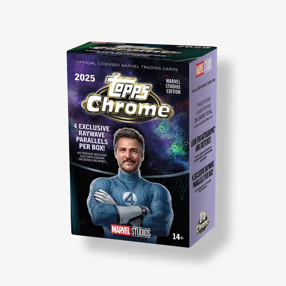 2025 Topps Marvel Studios Chrome pojawia się jako pierwszy w historii produkt Topps przedstawiający ikoniczne Marvel Cinematic Universe. To przełomowe wydanie celebruje superbohaterów, złoczyńców, akcję oraz emocje, które zdefiniowały wielki ekran — wszystko to w połączeniu z olśniewającą technologią chromowaną, odważnymi projektami i nostalgicznym stylem opowiadania historii.