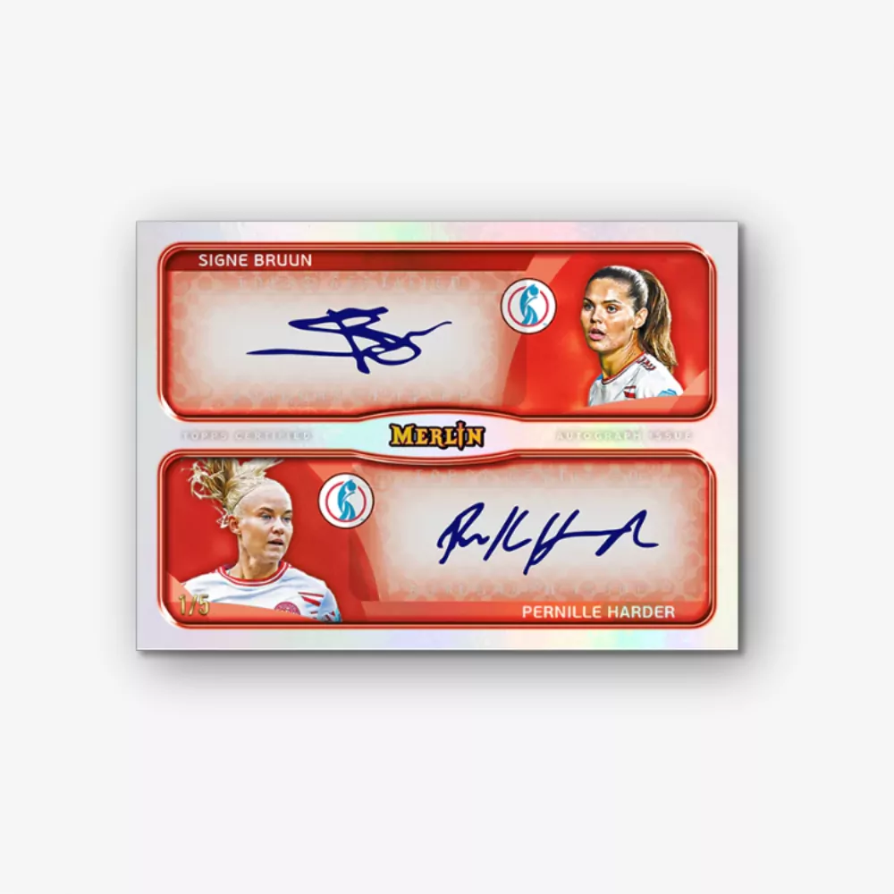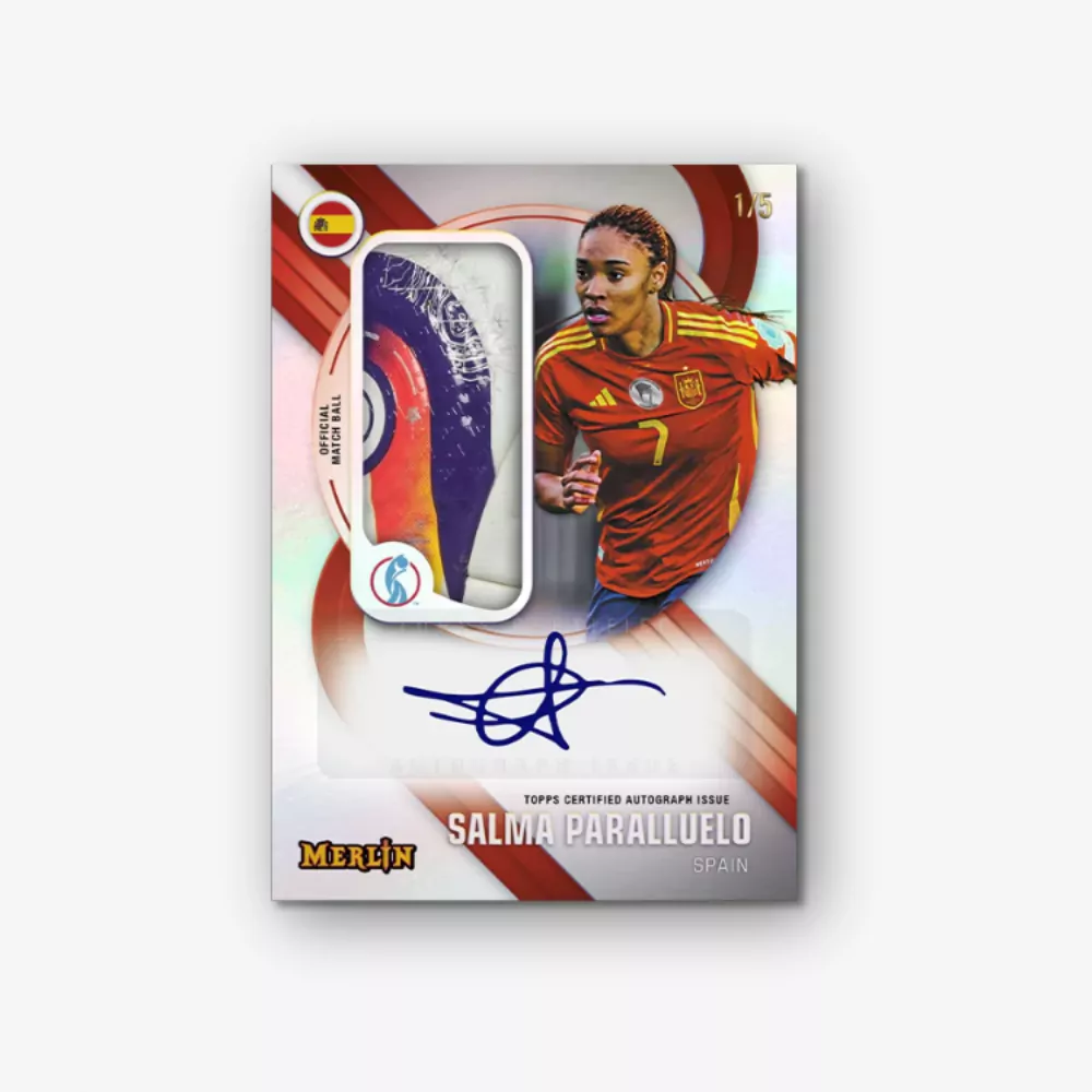 Szukaj rzadkich image variations i insertów, takich jak popularne karty Renaissance i Basel At Night w lucky boxach. W kolekcji znajdziesz też short prints największych gwiazd, karty National Debutant przedstawiające najlepsze, wschodzące talenty oraz Dual Partnerships z udziałem m.in. Bonmatí i Putellas. Dodatkowo, nie przegap kart Merlin’s Signature Relics, które zawierają oficjalną piłkę z UEFA Women’s Euros 2025.