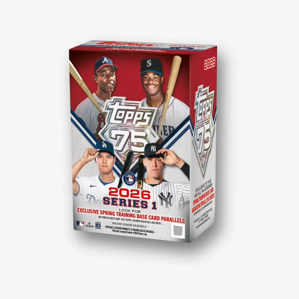2026 Topps Series 1 Baseball rozpoczyna całoroczne świętowanie 75-lecia Topps Baseball, oddając hołd najbardziej ikonicznej marce w świecie kart kolekcjonerskich. Od 75 lat Topps Baseball wyznacza standardy w Hobby, uwieczniając największych zawodników i najważniejsze momenty MLB – pokolenie po pokoleniu.