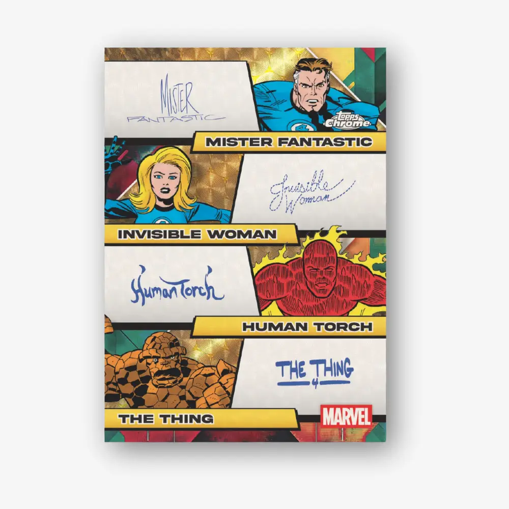 Możesz również trafić na kartę diamentową z okazji 60. rocznicy ślubu Reeda i Sue, z wyjątkowym konfetti-refractorem. Znajduje się tu także karta relikwiowa z autografem z okazji 20-lecia Nowych Avengers – zawiera fragmenty oryginalnego komiksu i autografy Steve’a McNivena. Wypatruj również kart relikwiowych z okazji 20-lecia Marvel Zombies oraz 50-lecia X-Men Giant-Size, a także rzadkich kart typu sketch, narysowanych przez znakomitych artystów.