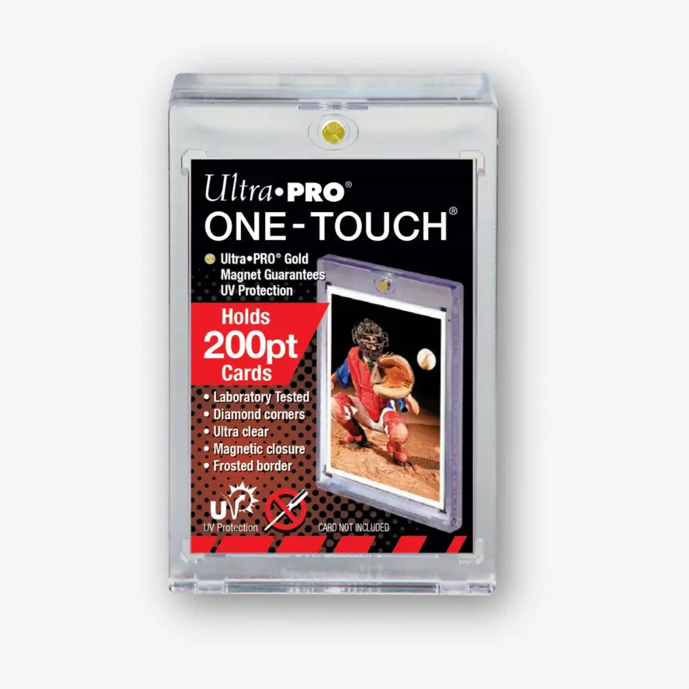 Ultra PRO ONE-TOUCH to ekskluzywne holdery do przechowywania. kart kolekcjonerskich. Holder ONE-TOUCH składa się z dwóch części i ma wyjątkowy mechanizm z zamykaniem magnetycznym, dzięki czemu nigdy więcej nie będziesz musiał używać śrubokręta. One Touch blokuje promieniowanie UV, aby chronić twoje karty przed szkodliwym działaniem promieni UV i wykonane jest z materiałów nie-PVC, zapewniając ochronę wolną od kwasów – co gwarantuje, że twoje cenne karty zachowają swoją kondycję podczas ekspozycji. Nasze etui ONE-TOUCH są idealne do prezentacji cennych i bardzo rzadkich kart do gier.