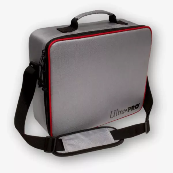 Wszechstronna torba typu All-in-One do organizowania i transportu akcesoriów sportowych i kolekcjonerskich! Wykonana z wytrzymałego, wysokiej jakości materiału, wyposażona w 10 modułowych przegródek, które można dowolnie ustawiać, dopasowując wnętrze do własnych potrzeb. Boczną kieszeń o szerokości 12″ zaprojektowano tak, aby pomieściła segregatory Ultra PRO z kieszeniami 9-pocket. Torbę można wygodnie przenosić za pomocą uchwytu w stylu walizki lub regulowanego, wyściełanego paska na ramię. Solidny zamek błyskawiczny zapewnia bezpieczny transport i szybki dostęp do zawartości. (Karty, pamiątki i akcesoria widoczne na zdjęciach nie są dołączone).